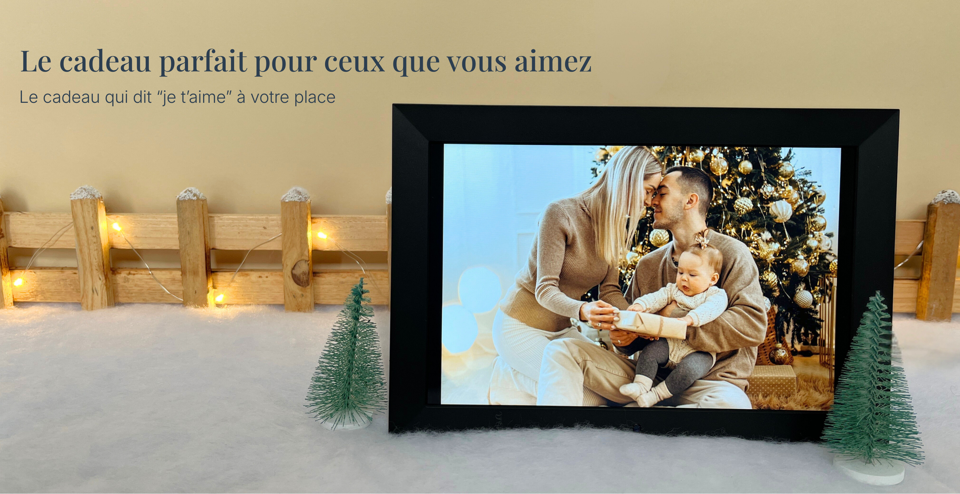 Transférez vos images et vidéos sur une clé USB ou une carte SD (jusqu’à 32 Go). Insérez-la dans le cadre, allumez-le et vérifiez que tout s’affiche correctement — c’est prêt à être offert.
